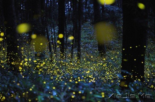 在2008-2011三年的时间里,日本摄影师在日本的真庭和冈山两个地方拍摄了很多萤火虫的照片。六七月的雨后的潮湿空气便是萤火虫们最爱的环境啦,如此多的萤火虫在空中飞舞,即便是见过大场面的摄影师也没法淡定吧。利用长曝光扑捉到了萤火虫的飞行轨迹,星星点点,令人如痴如醉。来源:this is colossal